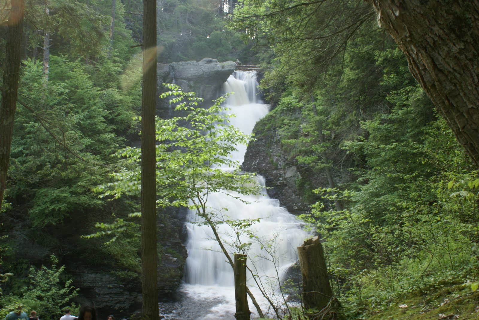 Walking down the trail ... the first glimpse of the tallest waterfalls in PA!